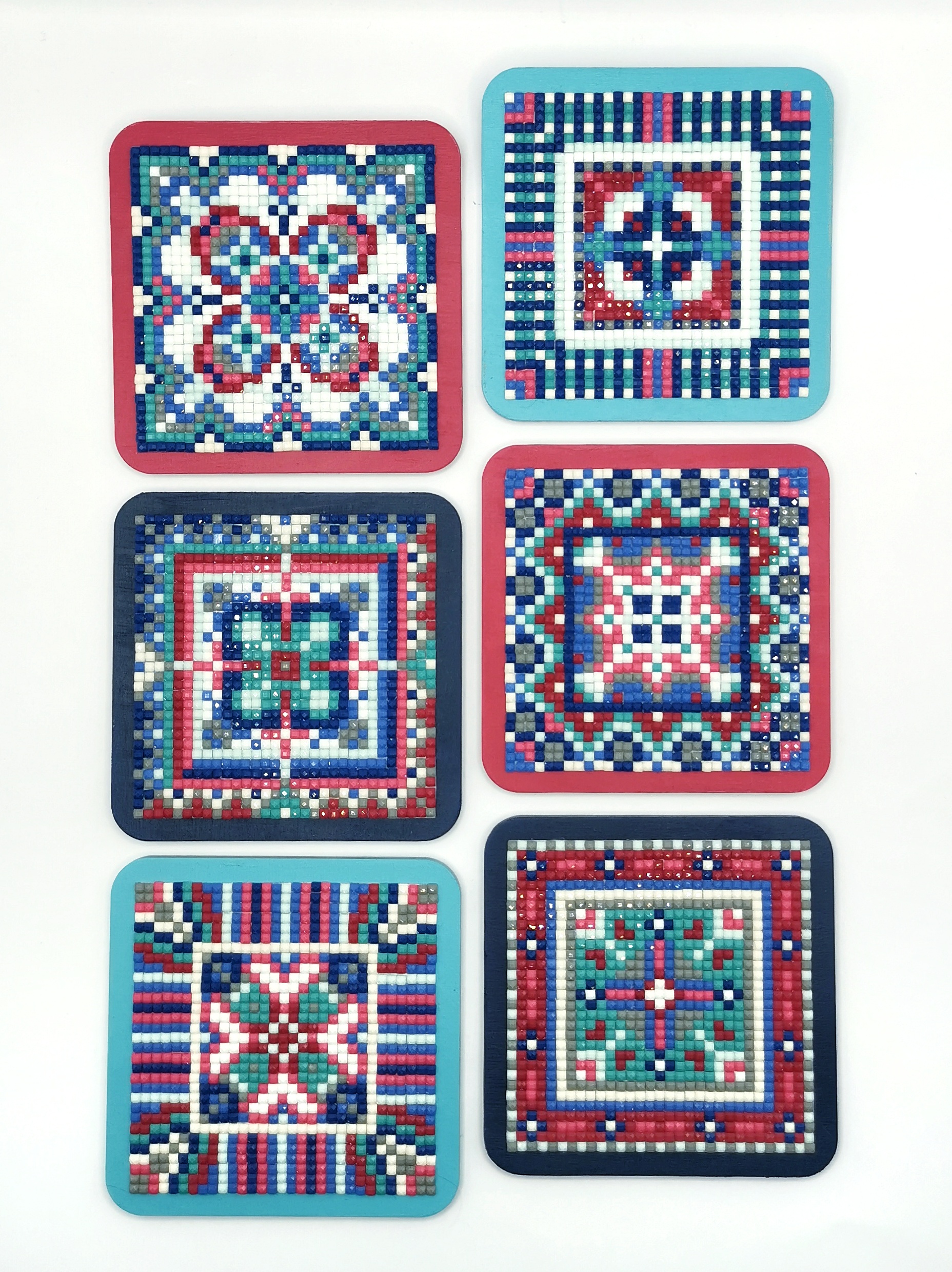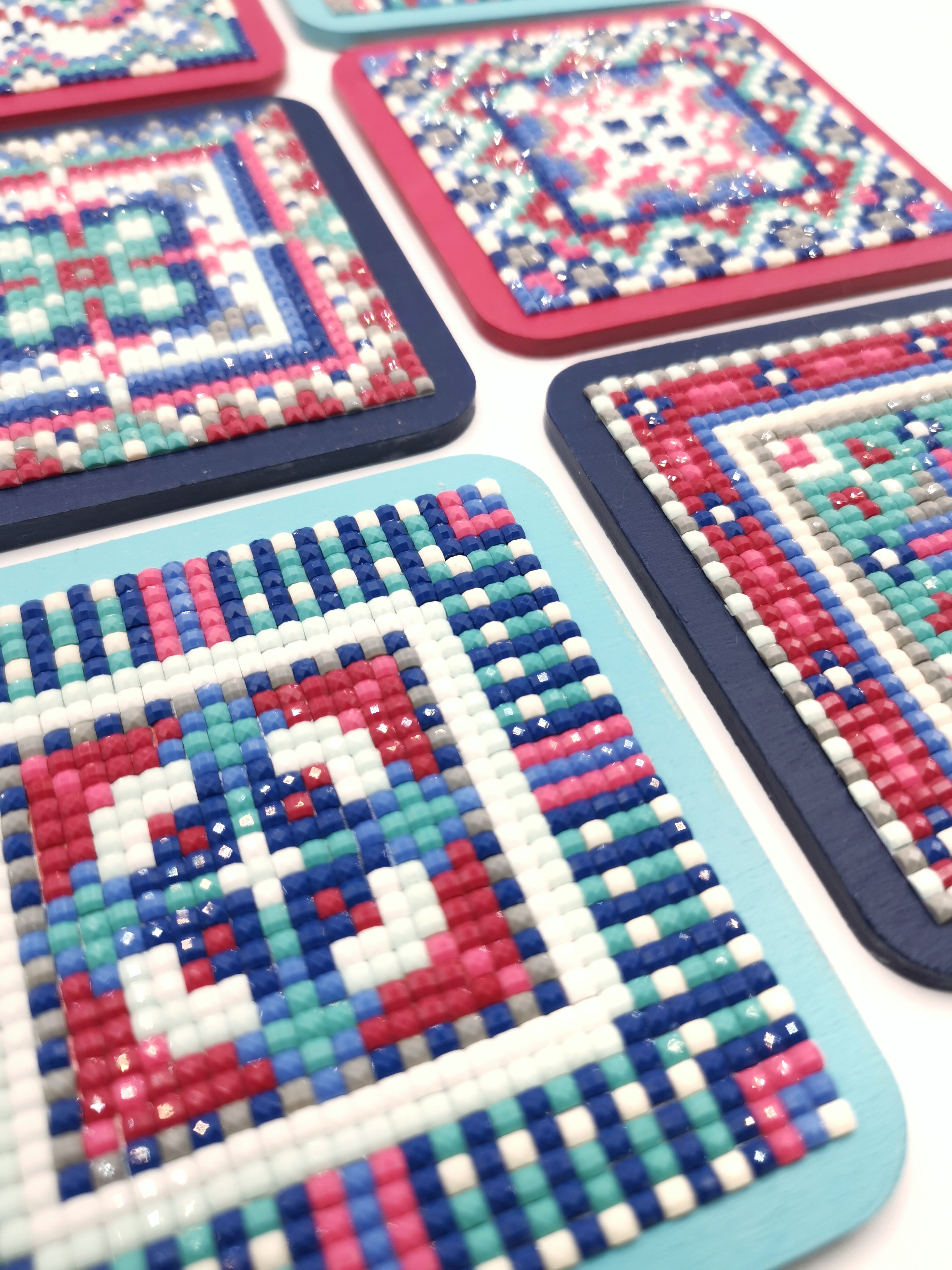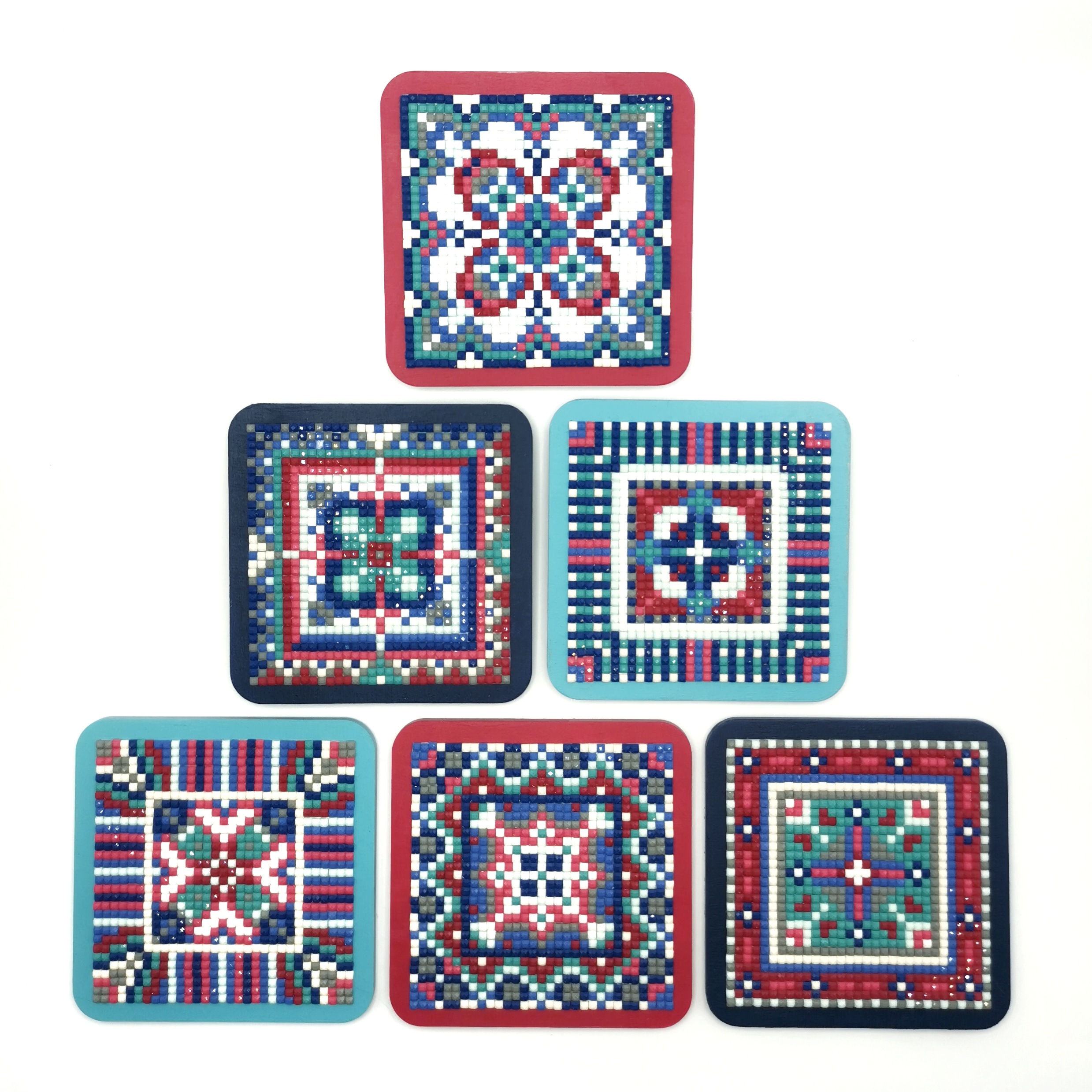 Алмазная мозаика "Изразцы" Подставки под чашки 9х9 см, набор 6 шт. Стильная защита для стола.